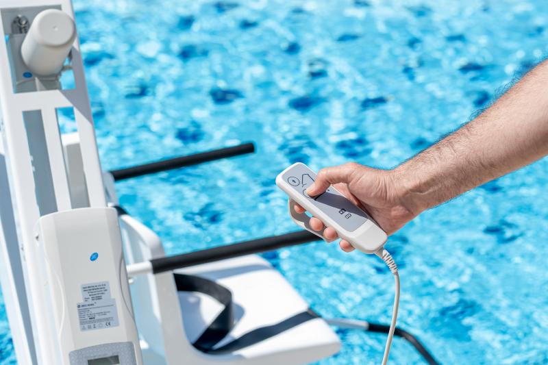 Elevador para piscina Nartlift semi portátil y a baterías.