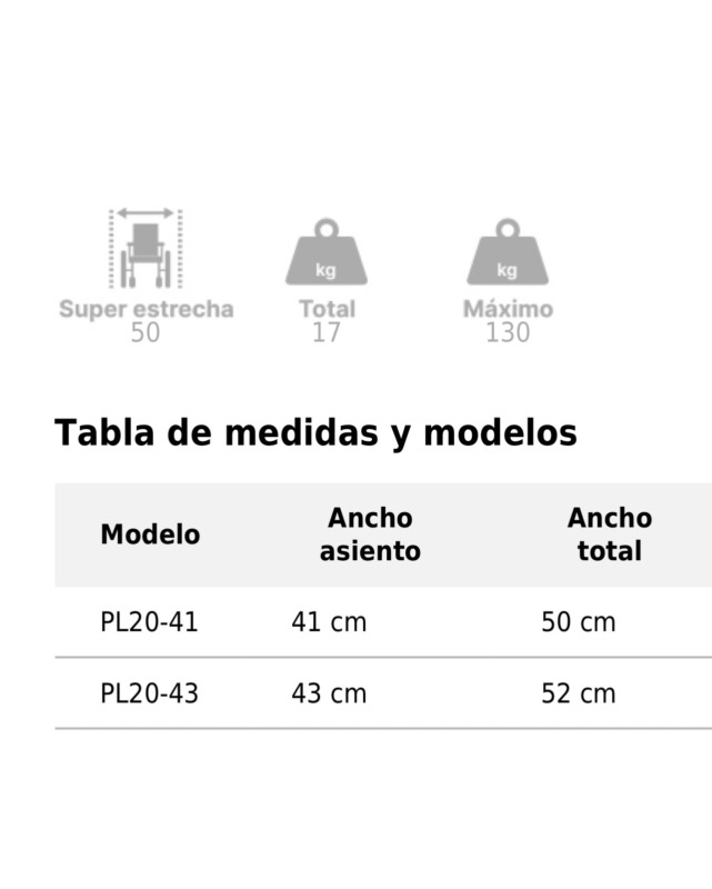 Esta silla es extraordinariamente estrecha (solo 50 cm.) para poder acceder por puertas y pasos normalmente